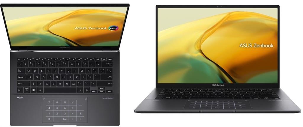 Asus Zenbook 14 UM3402YA OLED Series Ponder Black Notebook – AMD Ryzen 5 7430U Hexa Core 2.3Ghz with MAX Boost Clock up to 4.3Ghz 16MB L3 Cache Processor, 8GB LPDDR5 Memory onboard, Supports 8GB Max Mem, No memory slots, 512GB SSD Solid State Hard Drive PCIe, NO optical drive, 14 inch QHD (2880 x 1800 resolution) Glossy Type 400nits, 90Hz OLED Backlit Display, AMD Radeon Graphics, 802.11ax Wi-Fi 6, Bluetooth, Webcam, 4 Cell Battery, Fingerprint Reader, Standard US Backlit Keyboard, 1x USB 2.0 Type-A, 1x USB 3.2 Gen 2 Type-A, 2x Thunderbolt 4 supports display / power delivery, HDMI output, Micro SD Card Reader, 1.4 kg, Microsoft Windows 11 Home 64 bit Edition, Retail Box , 1 year Warranty